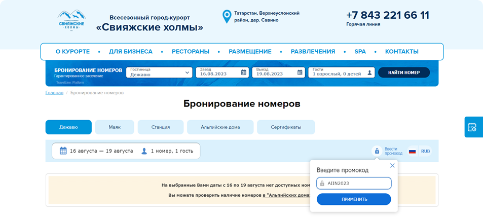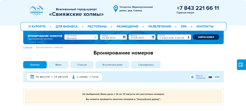- После чего сайт выдаст вам сообщение: На выбранные Вами даты нет свободных номеров